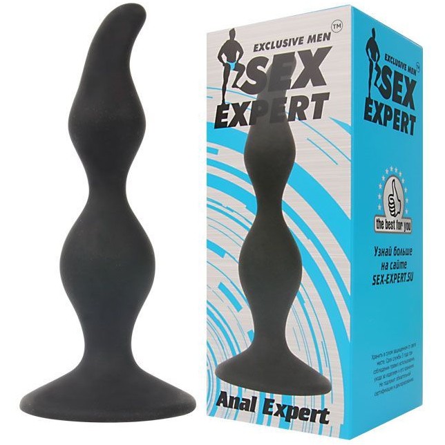 Секс-шоп в Севастополе / Анальные пробки, стимуляторы / Анальные пробки (втулки) / Втулка анальная ANALl SEX EXPERT волнистая, силикон, черная, 11х2,3 см