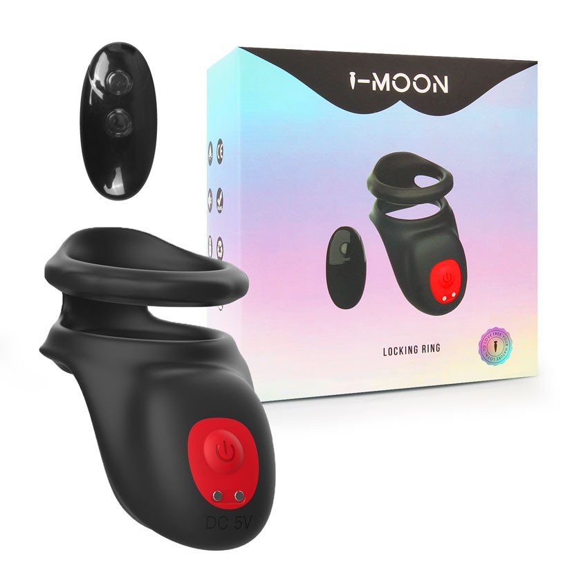Двойное эрекционное кольцо LOCKING RING с виброэлементом, 10 режимов, пульт ДУ, силикон, цвет - черный, 3,5х3,5 см