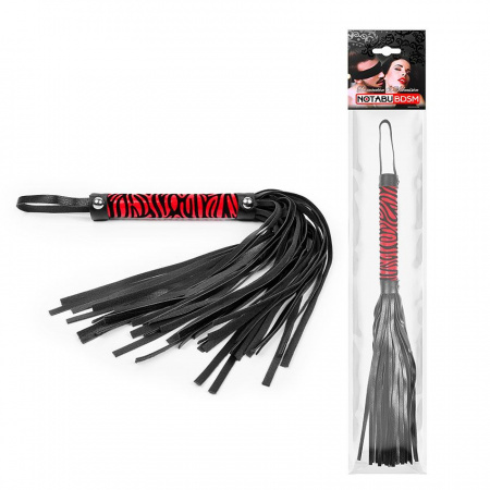 Черная многохвостовая плеть с круглой красной ручкой-зеброй, 39 см