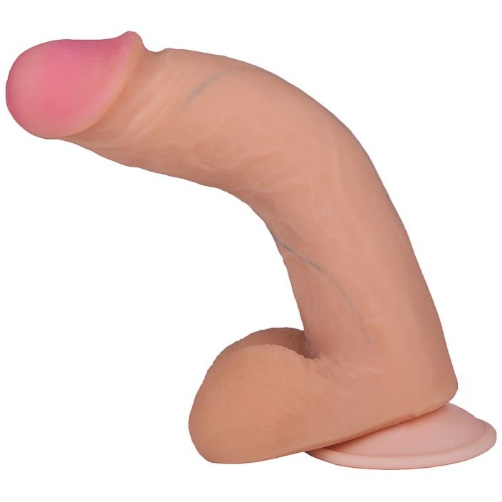 Крупный реалистичный фаллоимитатор на присоске, с мошонкой, неоскин, телесный, 23(19)х5 см