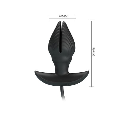 Анальная втулка MANSON в форме раковины, с надувом и вибрацией, 10 режимов вибрации, силикон, черный, 9,6х 4 см