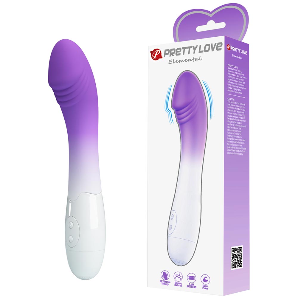 Вибратор ELEMENTAL от Baile, 30 режимов вибрации, бело-фиолетовый, 19(11,8)х3,2 см
