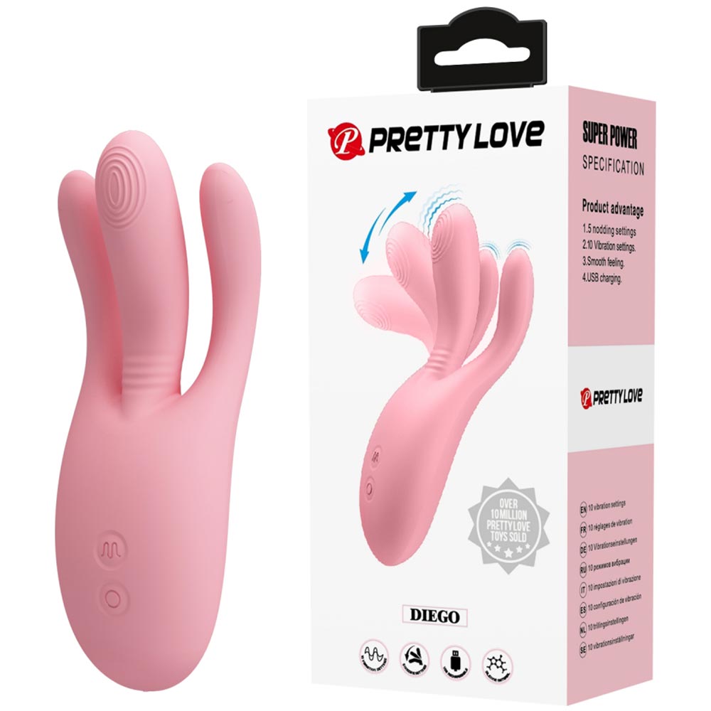 Этот необычный, очень красивый вибратор от Pretty Love обладает элегантным дизайном и тремя гибкими пальчиками с 10 режимами вибрации