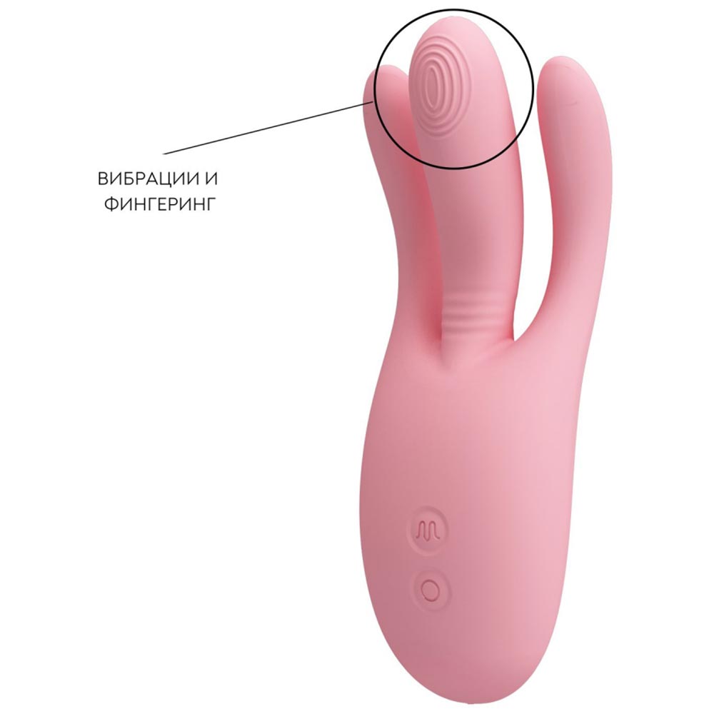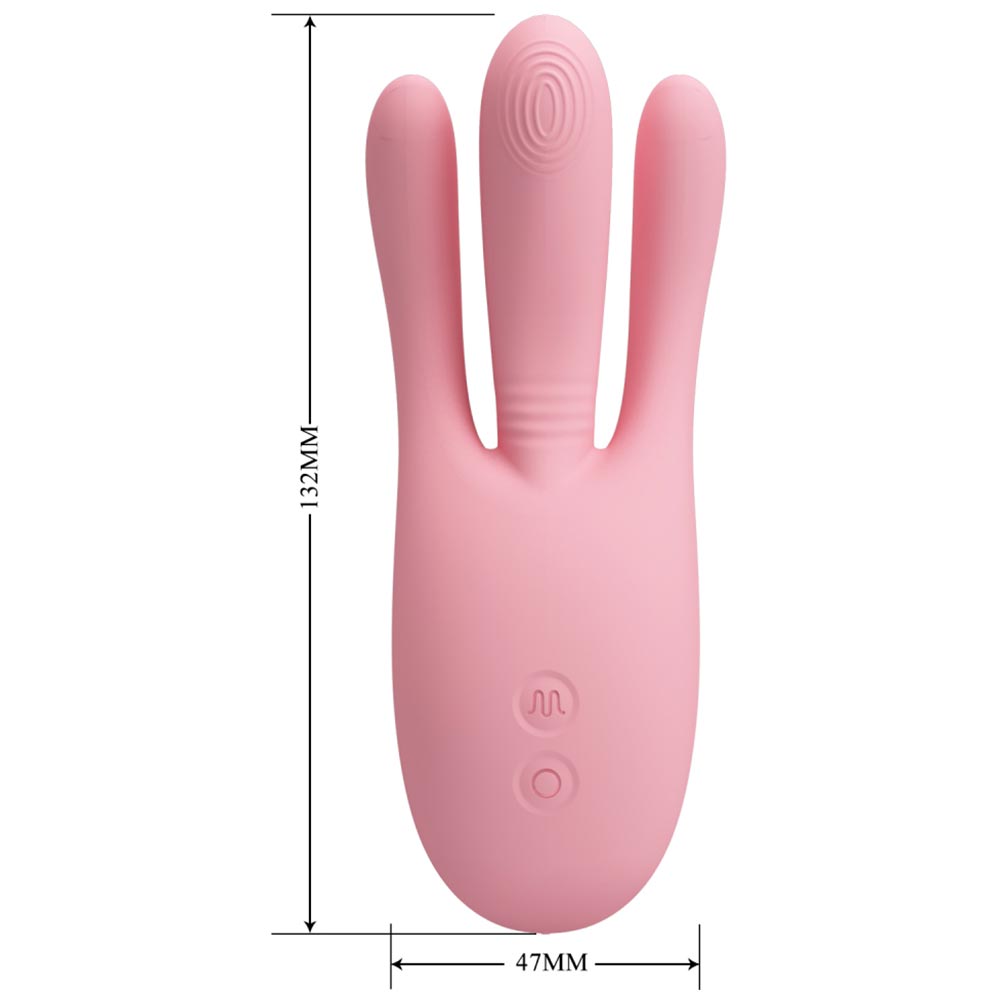 Вибратор Три Пальчика DIEGO с фингерингом , 10 режимов, силикон, нежно-розовый, 13,2х4,7 см