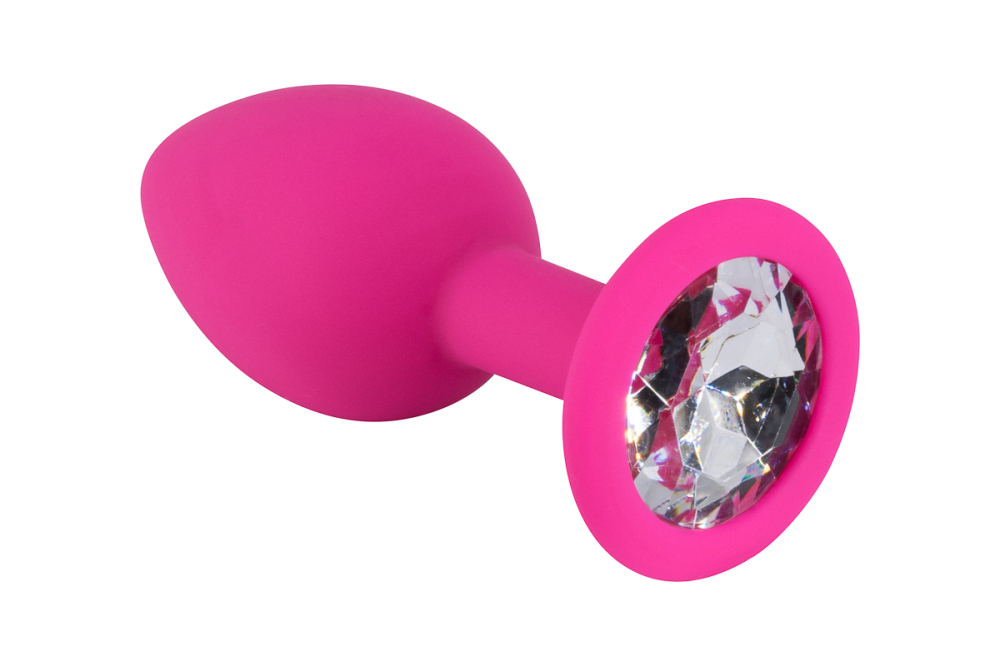 Секс-шоп в Севастополе / Анальные пробки, стимуляторы / Втулки силиконовые с кристаллами / Малые и средние / Розовая анальная пробка из силикона с прозрачным кристаллом, 7,5х2,8 см