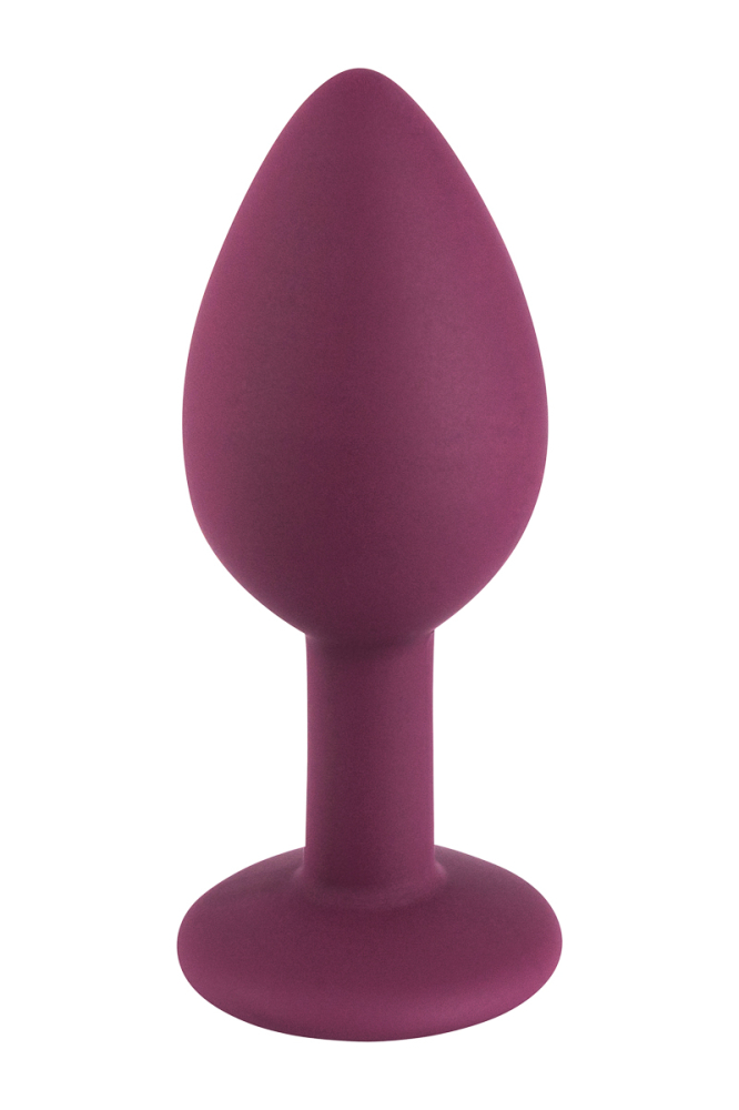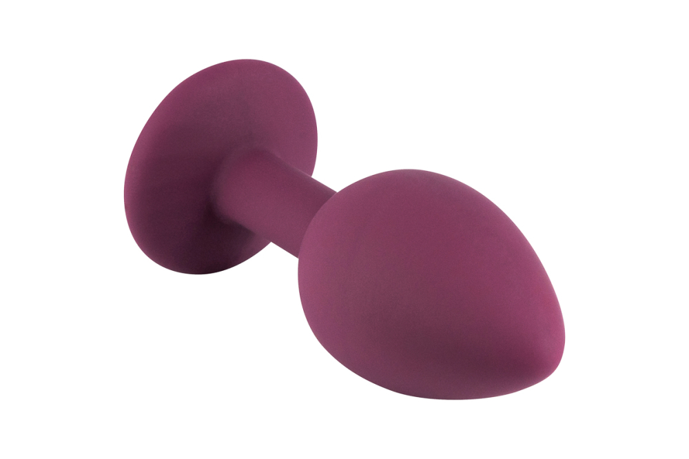 Секс-шоп в Севастополе / Анальные пробки, стимуляторы / Втулки силиконовые с кристаллами / Малые и средние / Сливовая анальная пробка из силикона с прозрачным кристаллом, 7,5х2,8 см