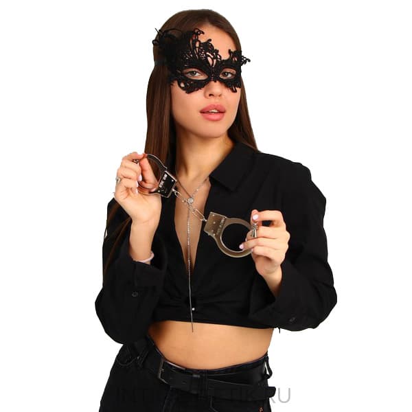 Секс-шоп в Севастополе / Садо-мазо / Наборы / Набор СЛАДКОЕ ПОВИНОВЕНИЕ: ажурная маска + металлические наручники