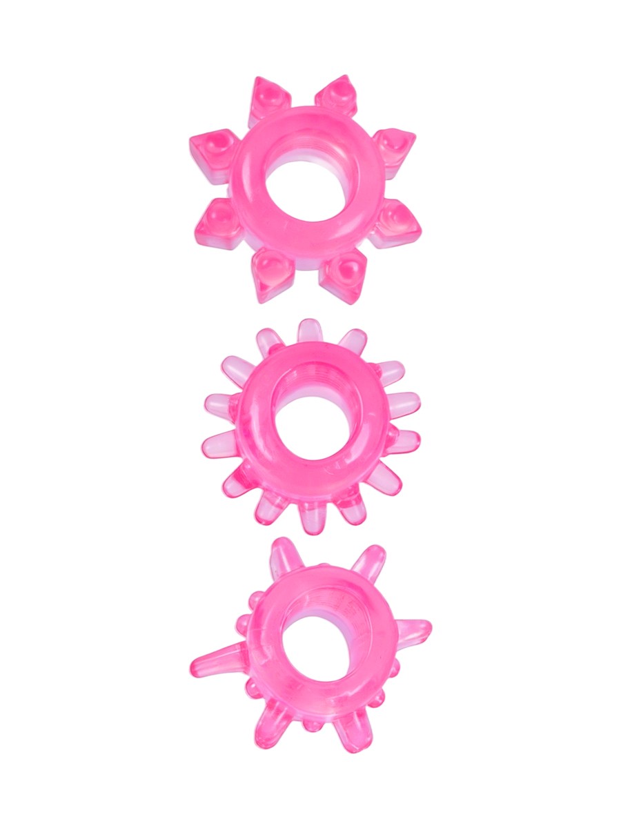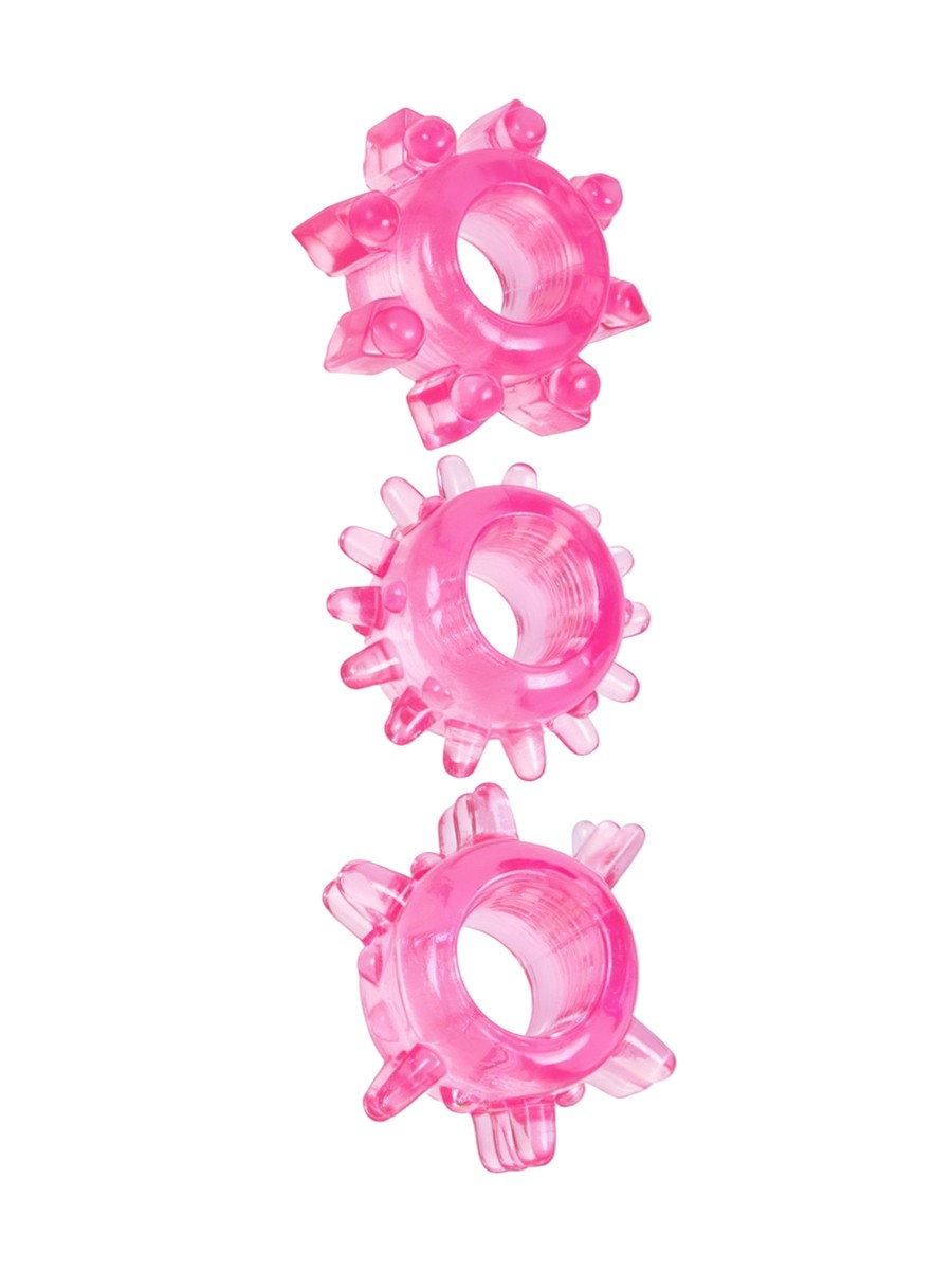 Набор из 3-х эрекционных колец разного рельефа, силикон, розовые